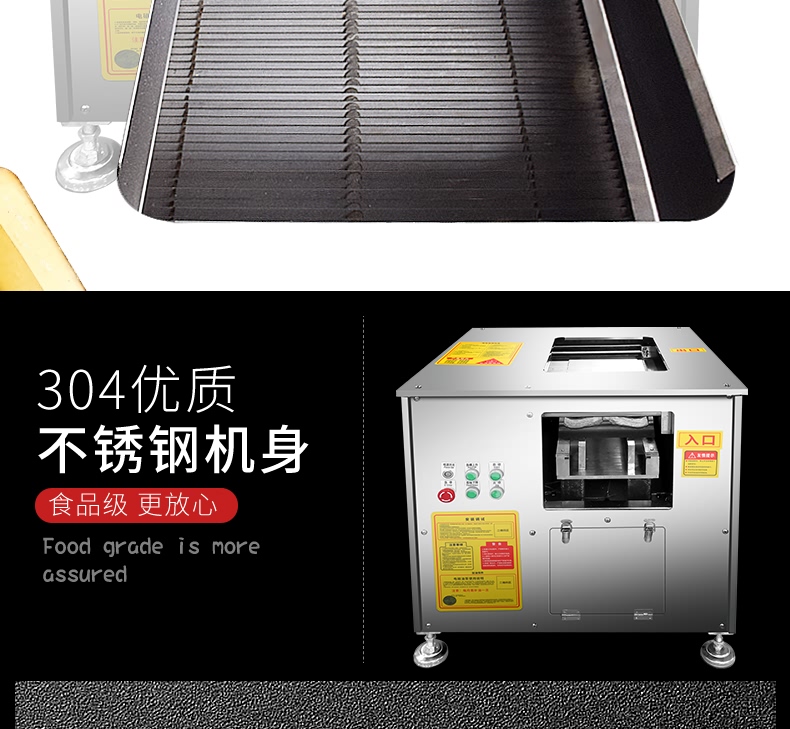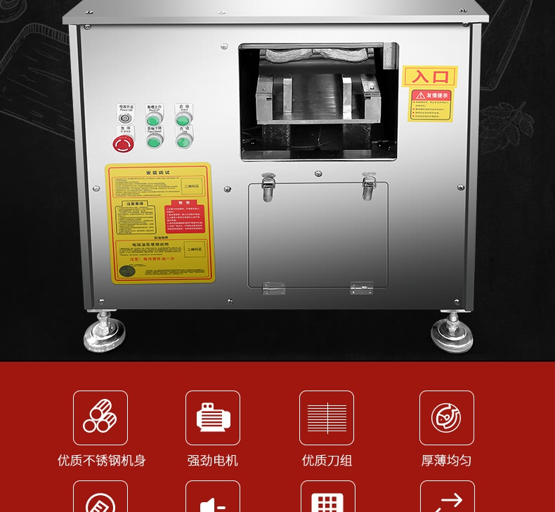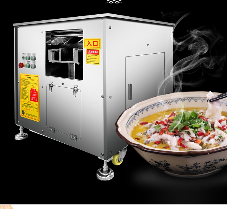 艾博馳ABCH-28AS雙槽切魚片機均適合切各類剔好骨頭的魚,五花肉,牛百葉,豬肝,牛肝,魷魚等新鮮或完全解凍不帶骨刺的食材??蛻羧后w:火鍋店,酸菜魚,水煮魚店,機關食堂酒店等各類餐飲公司。斜度及厚薄默認標準為35°、2.5毫米,斜度有(25°、30°、35°、40°、45°)可供選擇定制,厚度可從1.8毫米到10毫米范圍定制,定好規(guī)格不能調整,不能更換。斜度越小,魚片越寬。