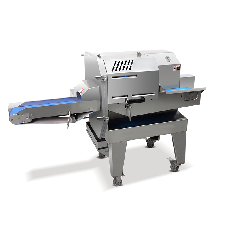 我廠生產(chǎn)的120A型 熟肉切片機(jī),適用于切割煮熟的肉類(叉燒肉、豬頭皮、豬耳朵、牛肚、肥腸、牛肉等熟肉等)切成條、片狀,出料口連接輸送帶,使得切出來的物料擺放整齊,無需排列可直接裝入托盤。適用于快餐業(yè),超市,大型食堂,食品行業(yè)等使用。