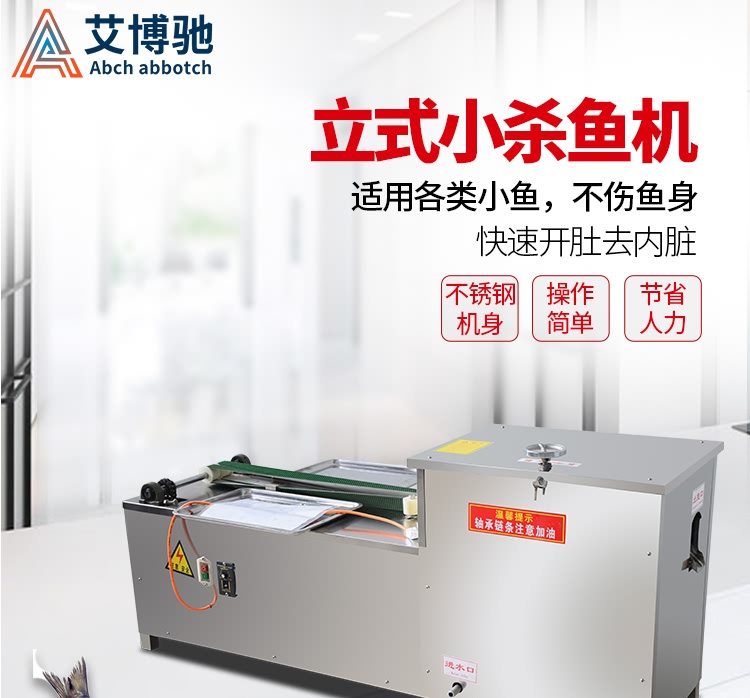 艾博馳ABCH-130L立式殺小魚機(開肚去內(nèi)臟不去鱗)采用不銹鋼材質(zhì)制造,耐磨耐用,符合食品衛(wèi)生標(biāo)準(zhǔn)。操作簡單,清洗方便,安全可靠,性能穩(wěn)定。功能強大,直接實現(xiàn)殺魚的工藝,生產(chǎn)效率高,產(chǎn)量大。去內(nèi)臟效果好,清洗干凈,對魚身基本沒有損傷。可根據(jù)客戶需求定做尺寸。